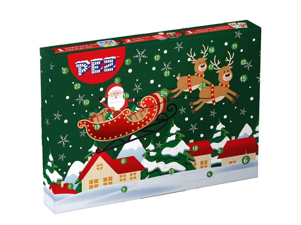 Zažijte sladké kouzlo adventu s adventním kalendářem PEZ! Tento speciální kalendář obsahuje 5 dávkovačů PEZ ve svátečním