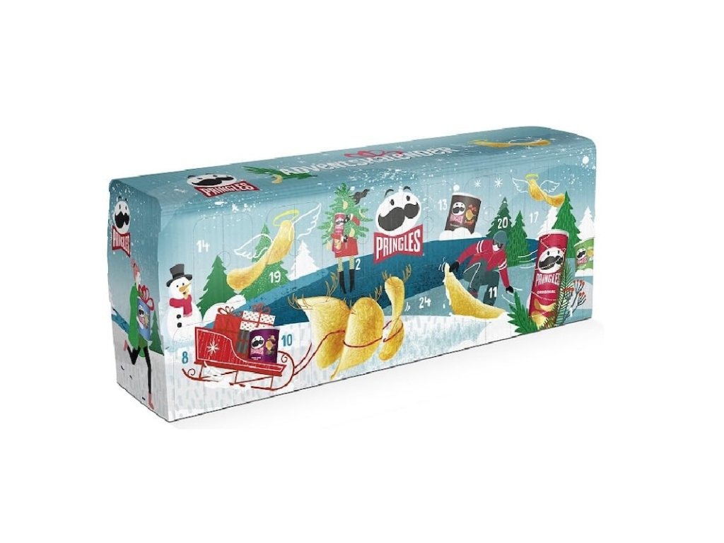 Adventní kalendář Pringles 2025 obsahuje 24 krabiček s lahodnou rozmanitostí příchutí chipsů pro opravdové milovníky.