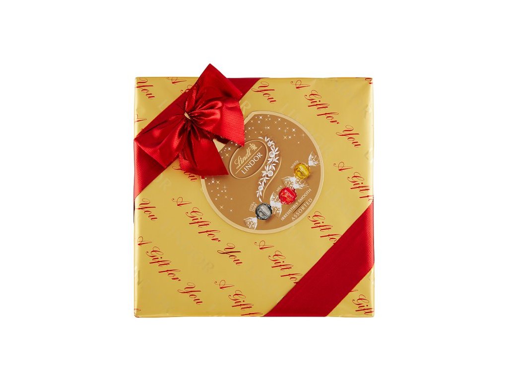 Mléčná, bílá a extra hořká čokoláda s jemnou náplní (44 %).