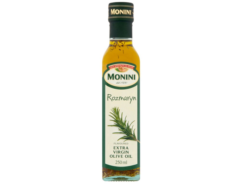 Aromatizovaný extra panenský olivový olej Monini s příjemnou chutí rozmarýnu se doporučuje zejména pro pečení, grilované maso, pečené brambory, pizzu a foccacci. Ideální do marinád na grilování. Stačí několik kapek oleje a dodáte pokrmům jedinečnou a originální chuť.