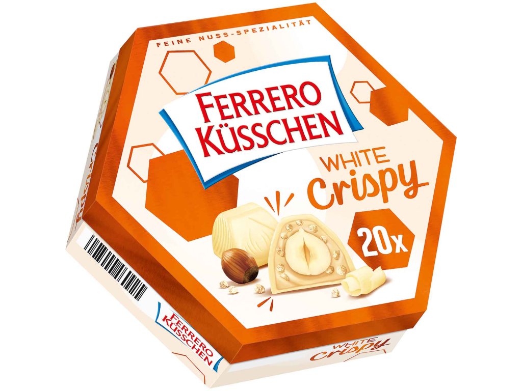 Bílý sen s křupavým skusem! Lahodné křupavé sušenky Ferrero Küsschen White Crispy nemají jen milovníky bílé čokolády