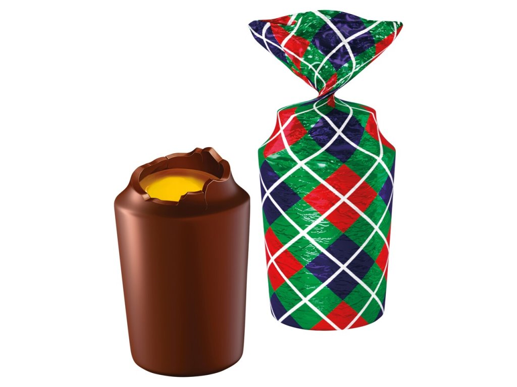 Mléčná čokoláda (52%) s vaječnou alkoholovou náplní (48%). Velikost balení: 0.025kg Složení Cukr, Zahuštěné slazené mléko, Kakaové máslo, Glukózový sirup, Sušené mléko plnotučné, Kakaová hmota, Alkohol 5, 6%, Sušená vaječná směs 0, 5%, Emulgátory (E442, E476), Zahušťovadlo (pektiny Mléčná čokoláda: kakaová sušina minimálně 35%, mléčná sušina minimálně 14% Informace o alergenech Může obsahovat lepek, sóju a ořechy. Čistý obsah 25.5g ℮