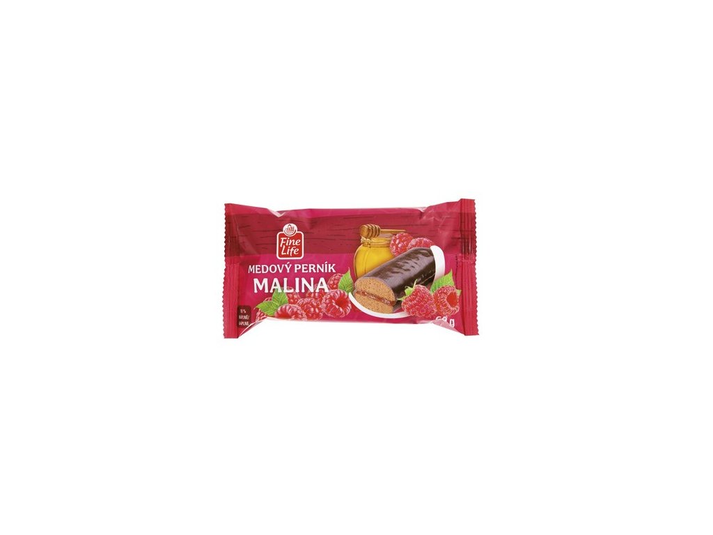 - Medový perník s ovocnou náplní s malinami v tmavé tukové polevě