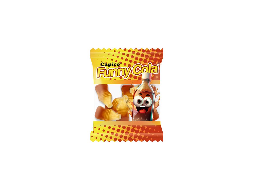 Funny Cola Fruchtgummi želé bonbóny ve tvaru dvojbarevných lahviček s jiskřivou chutí oblíbeného perlivého nápoje cola