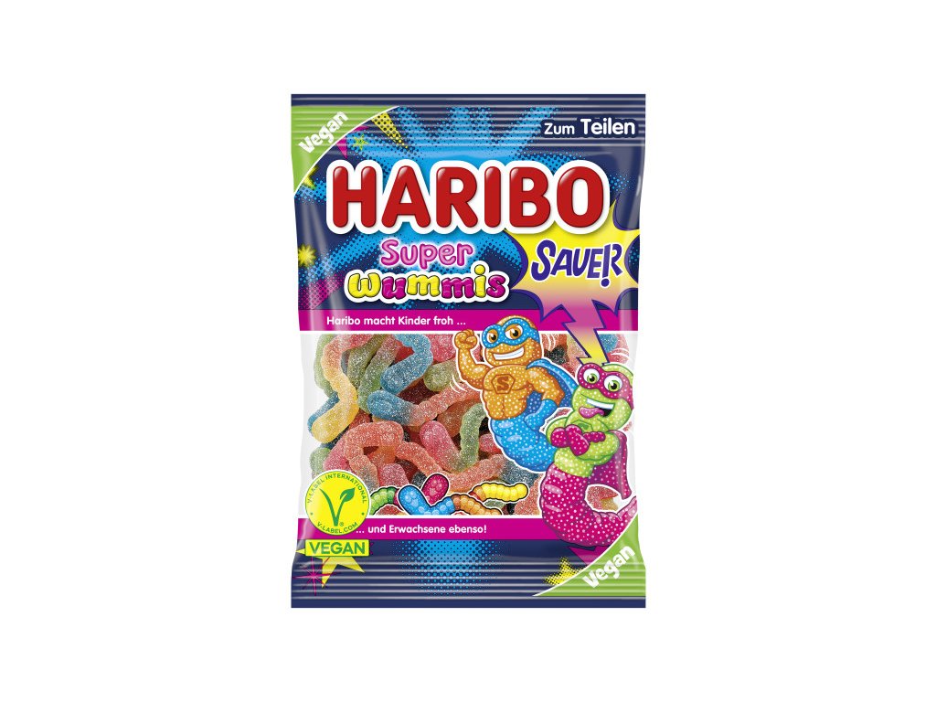 Haribo Super Wummis sour jsou ovocní ovocní gumoví červi,