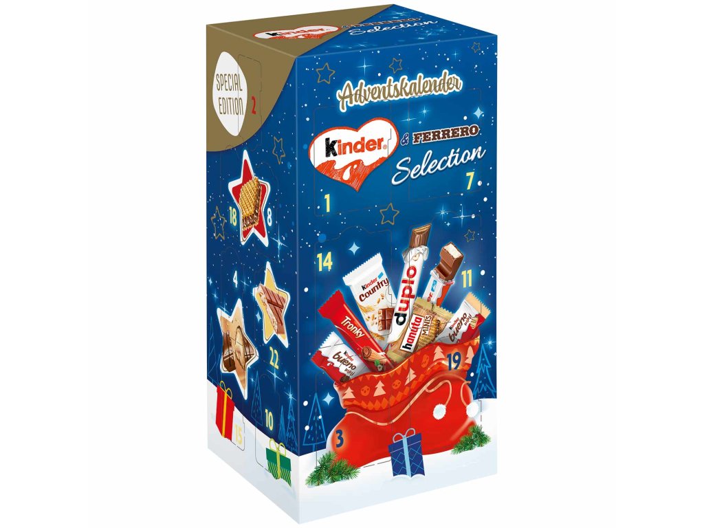 Veľký kalendár je navrhnutý s láskou a obsahuje pestrý výber dobrôt značiek Kinder a Ferrero. Tešiť sa môžete na skutočné klasiky
