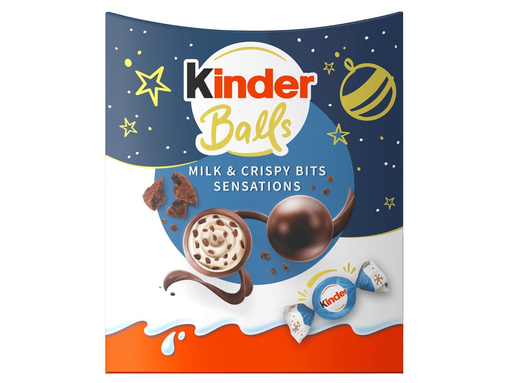 Kinder Milk & Crispy Bits Sensations kuličky kombinují jemnou mléčnou čokoládu s krémovou mléčnou náplní a křupavými kakaovými lupínky. Tyto malé kuličky nabízejí harmonickou souhru měkké textury a jemné křupavosti – ideální pro každého, kdo si chce vychutnat krémovou čokoládu s nádechem křupavosti. Každá kulička je jednotlivě balená a je ideální k mlsání, sdílení nebo jako sladká pochoutka. Moderní okamžik požitku v typickém stylu Kinder – kulaté, krémové a křupavé zároveň.