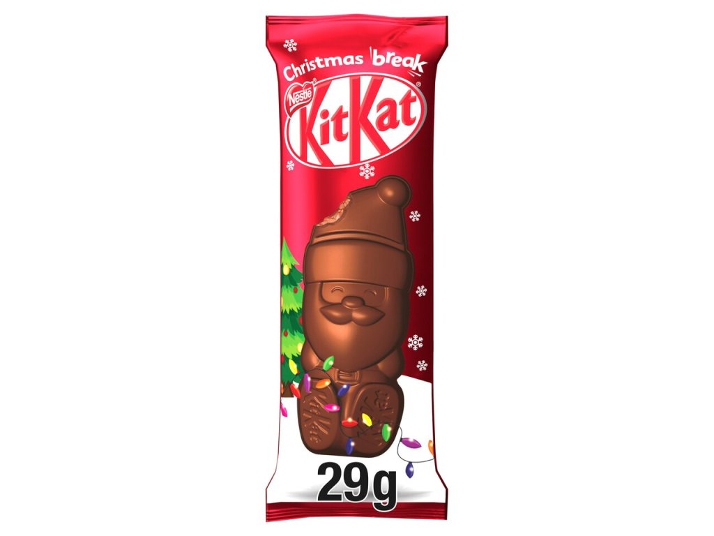 Oblíbená chuť Kitkat ukrytá v malé postavičce Santy z lahodné čokolády.