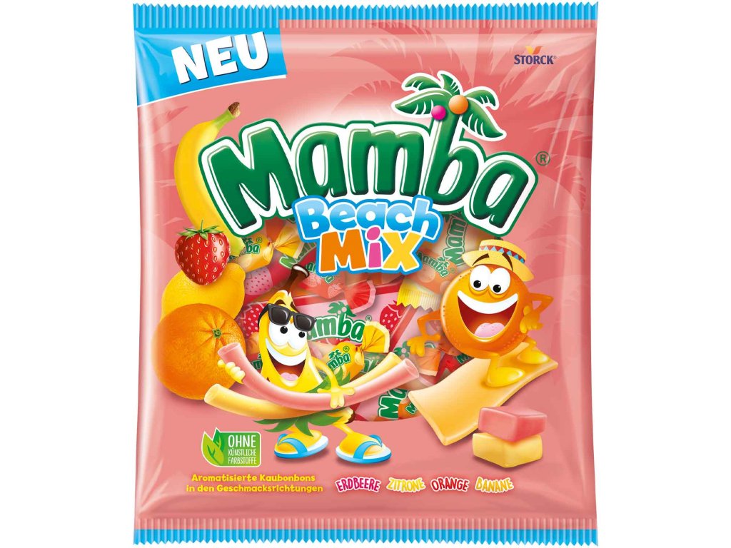 Celé léto Mamba v jednom sáčku! Mamba Beach Mix v sobě spojuje vše, co milují skuteční fanoušci ovoce: měkké žvýkací