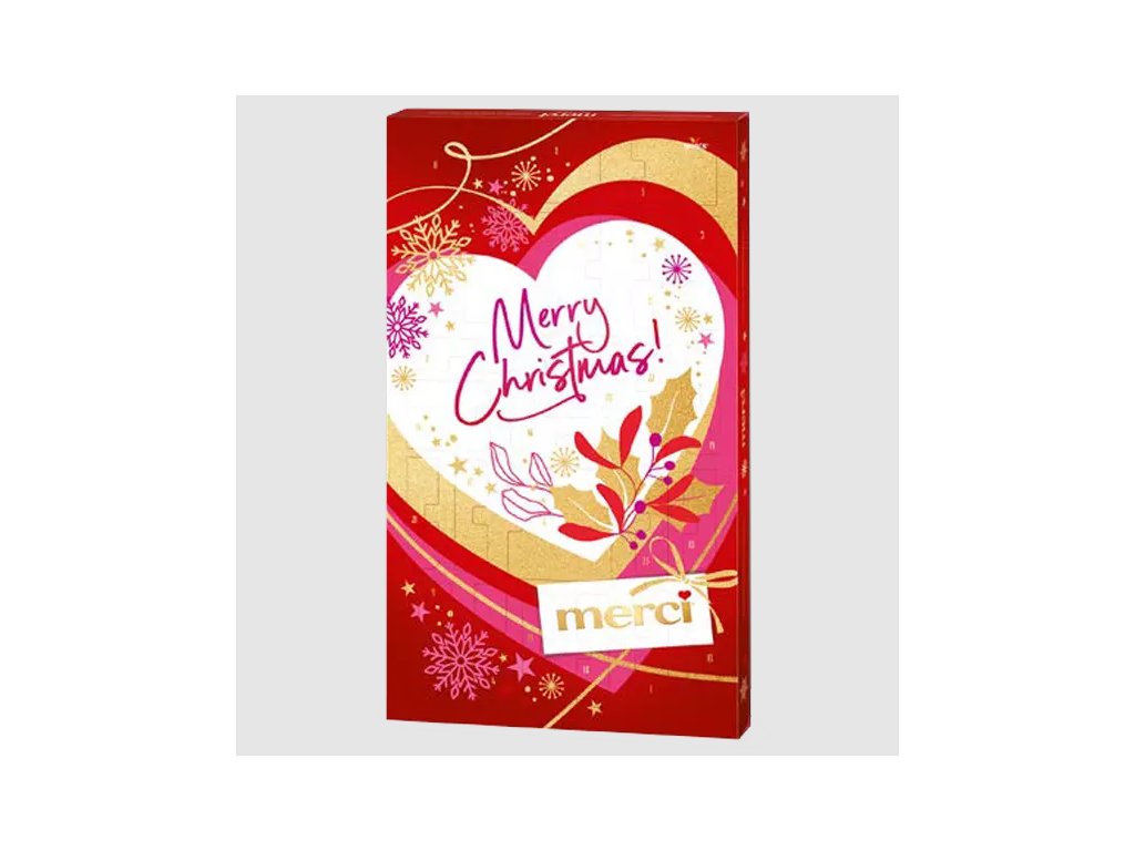 MERCI - ADVENTNÍ KALENDÁŘ 263g - Krásný adventní kalendář s 24ks vánočních překvapení z jemné mléčné čokolády, různé druhy.