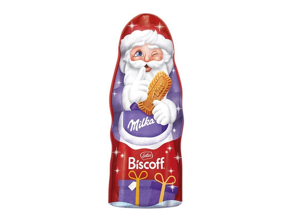 Milka Santa je dutá figurka, která je kombinací lahodné mléčné čokolády z alpského mléka a kousků karamelizovaných sušenek Lotus Biscoff. V mléčné čokoládě z alpského mléka obsah kakaové sušiny nejméně 33 %.