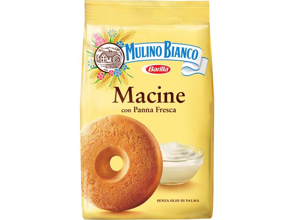 Macine se vyrábějí z jednoduchých surovin a jsou obohaceny smetanou vyrobenou pouze z kvalitního, čerstvého italského mléka, která jim dodává plnější a kulatější chuť. Vynikající samostatně, ideální pro ty, kteří milují klasický rituál šálku mléka v páře s dobrými sušenkami.