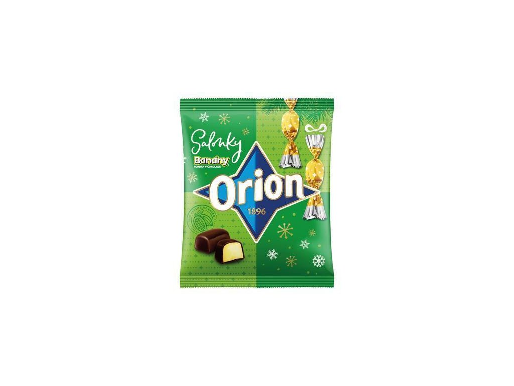 Fondánová cukrovinka 75 % s chutí banánů v hořké čokoládě 25 %.