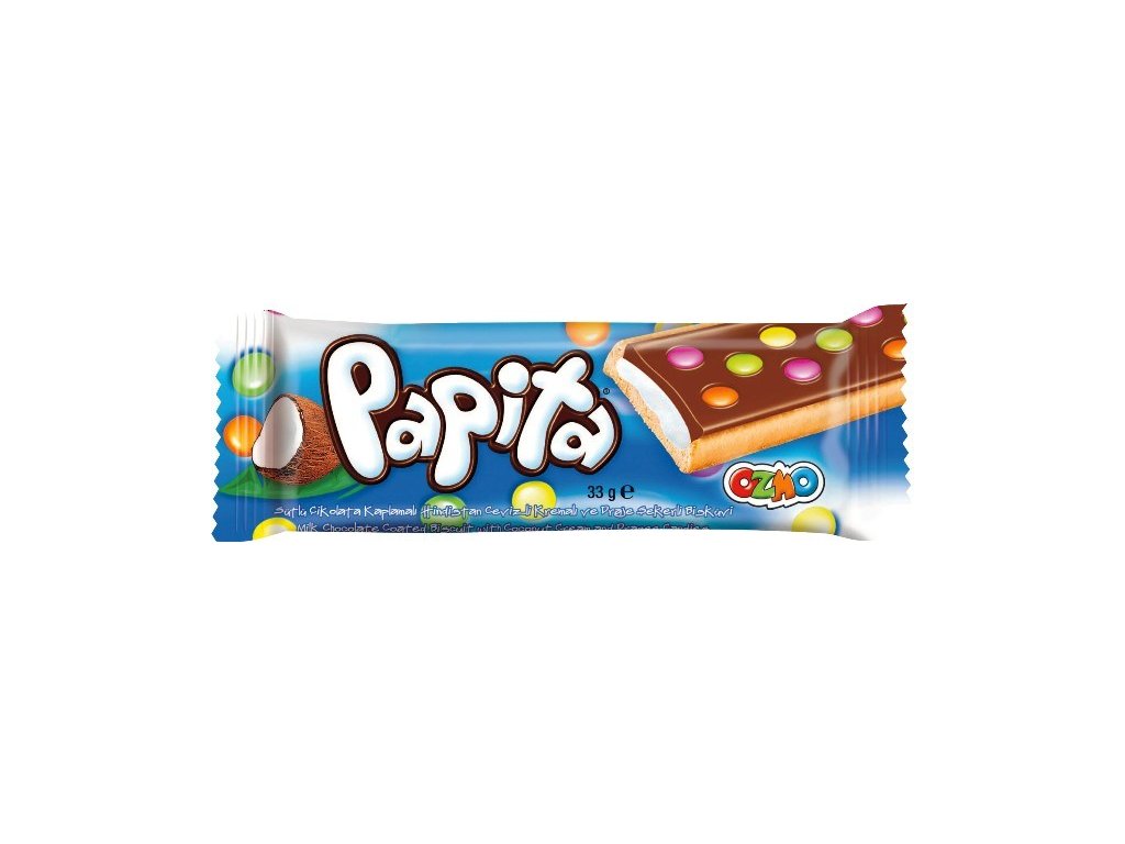 - cukr, fruktózový sirup, sušené plnotučné mléko, kypřící látky: E503, E450, E500, sůl, emulgátor: sójový lecitin), kokosový krém 29%