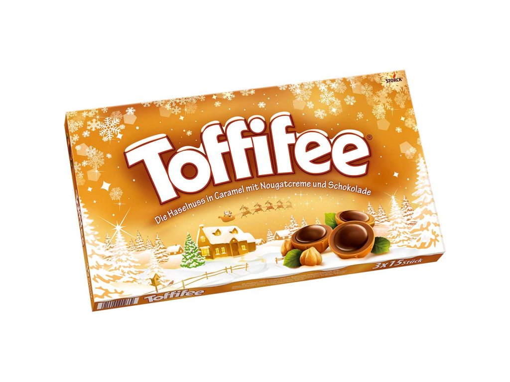 Toffifee vánoční 3x125g Celé jadro lískového oříšku v karamelu s lískooříškovým krémem a čokoládou